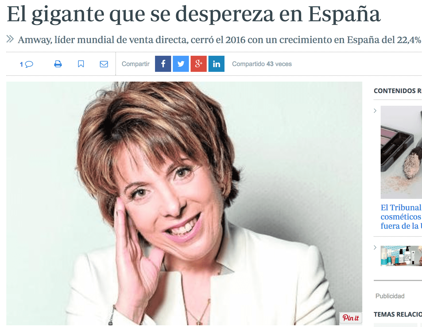 Con un facturación nacional que alcanza los 17 millones de euros Amway sigue creciendo en España. Y lo ha hecho más de un 22% en nuestro país. Tanto en facturación como en empresarios independientes miles de emprendedores han optado por el modelo de negocio Amway. Y es que no es casualidad que esta empresa, a punto de cumplir sus 60 años de historia, este ofreciendo el modelo de emprendimiento más interesante del momento. No importa edad. Tanto jóvenes como veteranos están encontrando en Amway y el el marketing de redes, el modelo de negocio que les permite una nueva vida. Un modelo que permite olvidarse del empleo tradicional y acercarse al emprendimiento.