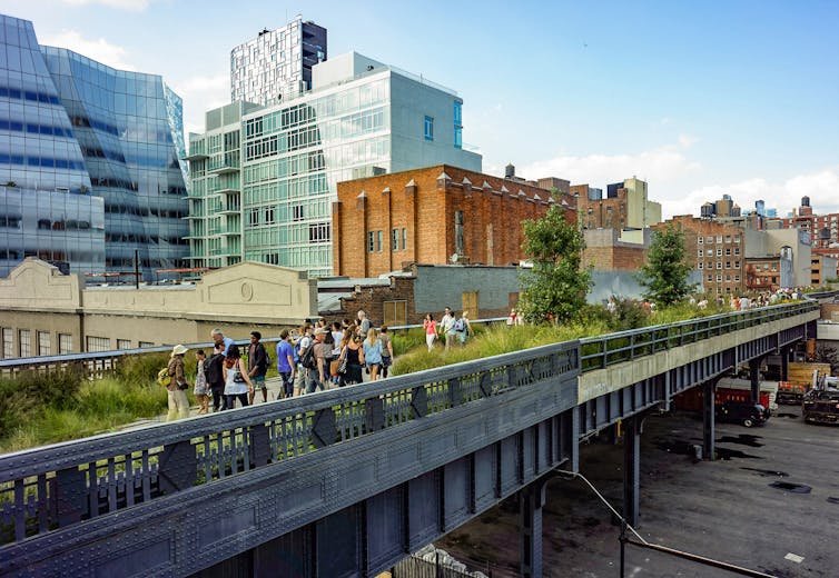 La mayoría de las grandes ciudades con programas dinámicos urbanísticos se encuentran con ese marco operativo. Así, la ciudad de Nueva York muestra varias experiencias en dicho contexto. El corredor verde High Line, que aprovechó las infraestructuras de los pasos elevados en las calles para construir áreas verdes y jardines, ha tenido un gran éxito económico, atrayendo a turistas y negocios.